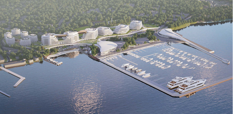 Курортный комплекс с парком и яхтенной мариной на 300 мест, в составе: Международный терминал, Отель, Апартаменты, Театр, Яхт-клуб, Энергоцентр.